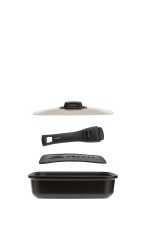 - Square shape for maximum cooking area & minimum packing space WITH a three layer Ilag non-stick coating on the inside to prevent your food from sticking and making cleaning an easy task, even a wet wipe will do.