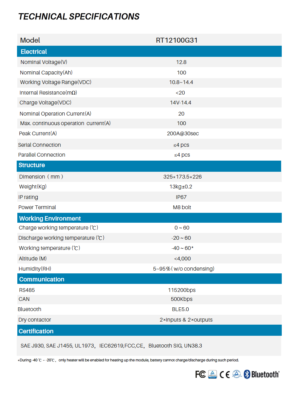 RT12100G31 – 12V/100 AH Heated Lithium Battery – By Pylontech